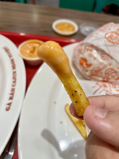 1/their fish burger is best in all chicken joints, no doubts. 2/all-you-can-drink softdrink is also great. 3/ their herb dries are still the best fries i can eat amongst other brands. 3/the staff team here is funny, relaxed. they also take their jobs very seriously. 4/they stopped selling their spicy mayo/tartar sauce. i thought they stopped producing it but it turned out that they just don’t sell them separately from the meals anymore, as my fish burger still has the spicy cajun sauce in it. how disappointing. they still sell white mayo sauce for 5k, but you can’t compare them to the superior Lousiana sauces, the highlights of Popeyes. 5/their fish sauce chicken is horrible. i said what i said, maybe they were dipped in sauce for way too long, because the meat taste like rubber. i spent a tremendously long time trying to tear the chicken apart with the utensils.