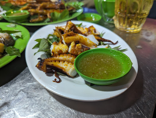 There are about 30 'Oc' restaurants on this street, and it's famous amongst Saigonese residents who'd frequent here with friends for drinks and Oc. No real trip to Saigon is complete without a night drinking and resting Oc like the locals do. I've been to a couple of others on this street, and wanted to take my wife here for the local experience. Our friend and local tour guide recommended this place and we met him here. We ordered 7 dishes, including my favourites like the blood clams and creeper snails, plus octopus, grilled king prawns, scallops in spring onion oil, plus a couple of others. They were all booked so well, each dish was different from the others and the sauces were very much on point. It was very busy there, and the customers kept on coming. The service was good but a bit rushed, they do try and hurry you to order as soon as you sit down but I guess as it's busy I can kinda understand. We had 7 dishes, a big variety, we didn't order anything extravagant (we did want a mud crab but they had sold out), the most expensive was the grilled king prawns at 150k VND for 6 large prawns, totally worth it. We also had 7 Tiger beers between us. Total came up to 650k VND, really reasonable considering the quality of the food. We had a great time here, great food, great company and great atmosphere - what else could you...