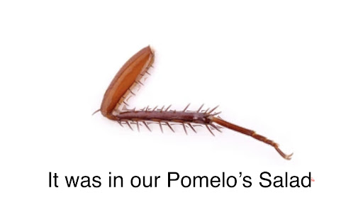 Today we thought we could give another try for this Thao Dien site because it has been 2 years. But no, found out that there was a cockroach’s leg in our pomelo salad (the worst thing is we nearly finished the pomelo salad already :(((). Anyway, I quickly called the waiter checked what it was and he quickly brought it back to the kitchen and asked the manager to speak to me! Well I actually felt sick when I saw it and didn't even have time to take photo of it. Well, very surprised to me and my family members that the manager said this was from another salad called 'Ba Khia' (kind of small crabs in VN) got mixed up with our Pomelo Salad. He said 'that' is the very small leg of Ba Khia, not cockroach and he said he tasted it and it is Ba Khia (well done for him that he tasted the leftover food himself in the kitchen secretly). Anyway, I asked him, well, just made another small portion of Ba Khia salad and show me that there are legs like that in the salad! He gave me all reasons like all Ba Khia are different, it wont be the same size of leg and told us that it will take quite long to make this salad, etc…. We actually were interested to know, so we waited. 15mins later it was out, seriously we all know Ba Khia is a small crab but it is still bigger than a cockroach, and cockroach’s leg is quite hairy as well (see photo below, exactly what I saw in our salad dish, hairy and small like from an insect) BUT the manager still said 'Oh, the leg you saw it was like from the very young Ba Khia and it was like the smallest leg for them.'