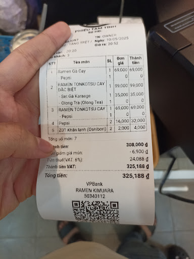 ngl I'm not the biggest fan of the tori paitan genre in general, but this was pretty decent for the price. This bowl clocked in at 89k vnd / 3.5 usd / 500 yen because it was a tokusei. Kimura offers ramen for as cheap as 50k vnd / 2 usd / 300 yen. The tori paitan has some flavors going for it but it was definitely on the thinner side. I underestimated their chili oil and went for the highest level of heat. It wasn't exactly spicy on the tongue but the spicy aroma was so intense it masked the smell of everything else. The toppings were also not bad for this price tag, although the bean sprouts were barely cooked. The thing that stood out the most was the thin and low-hydration noodles that are similar to what you will find in a bowl of Hakata tonkotsu. I don't really like this style of noods as well but they were quite well made and paired well with the soup. As I paid my bill, I realized that they do have a Yamato machine in the kitchen so they definitely made these noods in-house.
