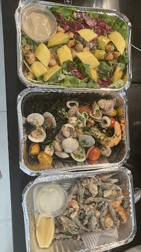 The food was delicious and the portion was generous! Me and my girls wanted to have a light lunch so we ordered and shared 1 signature salad, 1 squid ink pasta and 1 fried seafood basket ( tempura sort of).