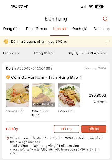 Dịp 30/4 vào SG để xem lễ sẵn bạn bè giới thiệu quán cơm gà ngon có tiếng lâu năm, thử đặt món trên app mọi thứ suôn sẻ thì lát quán gọi hết đùi vịt quay ok hoan hỷ ngày lễ đổi lấy nạc chả có vấn đề gì, lúc sau thì lấy sdt shipper gọi hỏi đơn này trả tiền mặt hay thế nào, trong khi đã thanh toán qua app chắc có vấn đề mắt nhìn, mình vừa nói dứt câu đã thanh toán qua app thì cúp ngang và huỷ đơn đã xác nhận với lý do gọi lại là shipper kh chịu giao đổ hết về shipper, mình đã khá khó chịu thì lúc này mới bảo giá trên app kh đúng nên hủy tôi kiểu man wtf thế thì mở quán trên app cho ngta đặt làm gì tắt mẹ app đi, trước lúc quán gọi, shipper cũng tử tế gọi cho mình bảo là quán nói giá kh đúng nên có vẻ kh muốn bán. Chốt lại là mấy người mở app bán, giá mấy người cũng tự đặt ra, tôi là người dùng đặt món dựa trên app mình đăng ký cảm thấy kh bán được thì nên đóng app chứ đặt 4 phần cơm cho cả gia đình thì bị huỷ ngang với cái thái độ lòi lõm đổ...