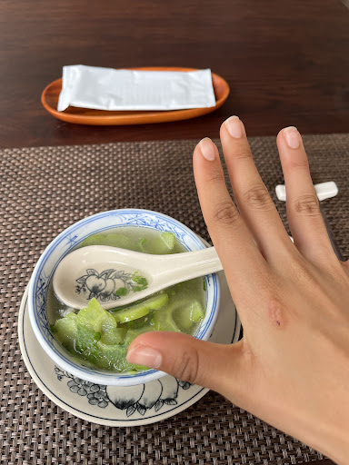 Read moreWhere to begin? I came here because of all the good reviews however I left extremely disappointed. I have never left a restaurant after one spoonful however my visit to Huong Lai was the first time. I ordered the chef’s recommendation: shrimp and bitter melon soup. First of all, although I ordered it medium sized, the soup was minuscule, the shrimp were poorly cut, part minced, part chunks, not to mention that there were only 3 of them (yes I counted), all in all, the quality was abysmal. The soup was not only bland but really bad (and Im not picky with food!). I wish the waiter would have at least told me about the quantity but when I asked about the size (thinking it would be too big… oh what a fool I was) she told me it would be enough for me. I attach pictures and I must say I have really tiny hands. However the service was overall very good and welcoming. I advice you to save your money and spend it...