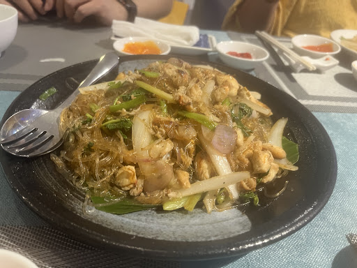 🦪 We started with a beautifully presented razor clam dish topped with crushed peanuts, spring onions, and herbs – a unique and tasty combination that instantly set the tone for the meal. 🦑 The fried baby squid was crispy, well-seasoned, and cooked to perfection. 🦀 We also enjoyed another fried seafood dish (possibly soft shell crab or another variety of squid) that had the perfect crunch and went so well with the dipping sauces provided. 🍜 The highlight for me was the glass noodle stir-fry with seafood – light, flavorful, and packed with vegetables and juicy seafood bites. 🥗 We ended with a refreshing seafood salad served with rice paper and fresh greens – a healthy and flavorful end to a fulfilling lunch. 🍹 The mocktails and drinks were not just refreshing but also beautifully presented with cherries, herbs, and fun straws – definitely Instagram-worthy!
