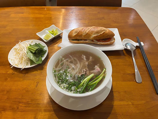 Came across this shop when walk past since looking for beef pho for lunch. Shop is 90% full on the 1st day of Tet between 2 pm to 3 pm. Take quite a while to be served with the coffee. Follow by pho & spring roll. Was served the wrong coffee w/o milk. Had it topped up with milk. Can see the couple busy serving the customers without any helper. Have to wait for at least 20 mins for each serving. Anyway, have the time to wait since it is Tet & most shops / restaurants are short of manpower. Ordered a Special Banh Mi for a takeaway. The portion of the pho is big. Beef is fresh. While the spring roll is very fresh & does not stick to the plate. Food overall is very good to my tastebuds. The environment is air condition. The couple do speak good English. You will not have problem communicating with them.