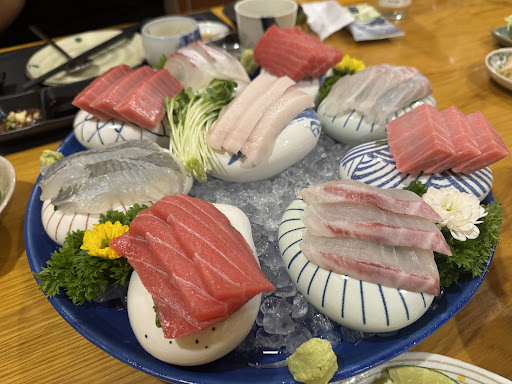 Quán bán sashimi kiểu hàn cũng khá là tươi, nhg sao mình thấy ko ngon, ngọt thịt như quán Nhật. Hôm mình đến hết bụng cá ngừ Otoro, quán đưa ra 2 loại cá ngừ vị trí khác nói ngon hơn otoro nhg mình và các bạn đều thấy ko ngon, thịt còn đông đá, quán nói ăn nhay khi còn đông đá mới ko tanh.