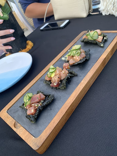 I had such a nice time I decided to come back just two weeks later with more friends, and although it was super wet and we were meant to sit at the cabanas Emilie, the manager, made us feel so special and put us in a VIP room! What an experience! We ended up trying the beef Tataki (so good), BBQ calamari (delicious) and the cauliflower dish... all just great! Emilie even came out later with free shots for us... she even was able to let us sit outside in the cabana for our final drink of the night.