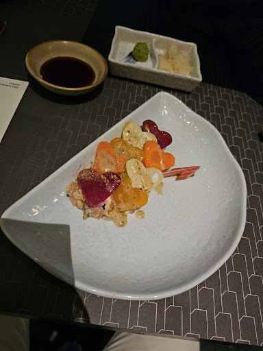 We sat down in this beautiful table with dim lights ambience and got their menu. Great variety of dishes and very enticing options with high-quality ingredients. We ordered salmon and fatty tuna sashimi for starters and some cocktail drinks. We waited for about 10 minutes before the waitress came back to tell us they had run out of tuna. Wow, a Japanese restaurant that doesnât have ANY tuna. Ok, we said. Letâs try something else. We then proceeded to order a wagyu dish. To our surprise, the waitress came back a few minutes later also to tell us they had ALSO run out of wagyu for the night. We ordered a Salmon taco, which was basically a sashimi in a cracker. You can guess it by now, but they also told us the crackers had run out and couldnât provide that dish. At this point we simply gave up on trying and stuck to Salmon, which we knew was STILL available. And let me tell you, they were really good. And if I had had a similar experience with other dishes Iâm sure I wouldâve given this restaurant a 5 star, but I simply cannot condone with the fact that a restaurant of this size, name and magnitude could run out in one night of so many key ingredients to its cuisine. That simply is not allowed to happen in high end dinning. Theyâre not running a restaurant inspired by Taylorism with minimum stock and maximum efficiency. Itâs a restaurantâs obligation to be prepared for occasions when demand is higher than expected, and have an acceptable minimum stock of its ingredients to provide its customers with top-notch quality service. I consider that unacceptable.