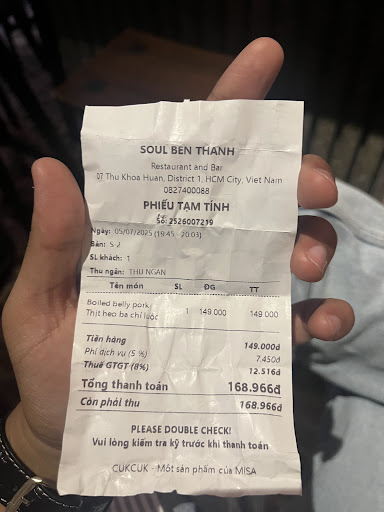 I cannot tell you the number of times and receipts I have from Soul Ben Tanh. From writing a review each time, and handing tips to the staff.