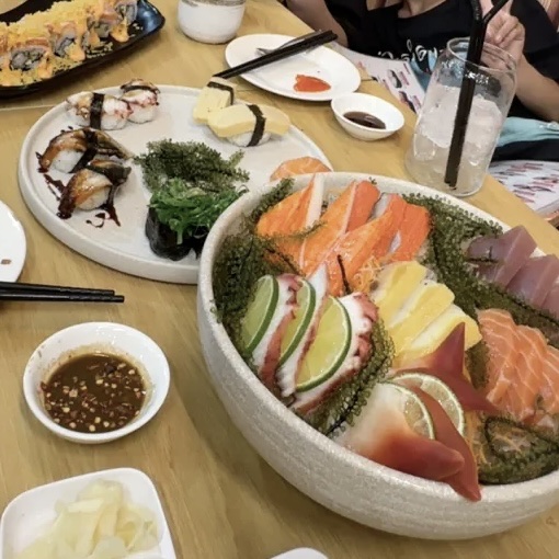 Read moreGia đình mình đi ăn, nhân viên khá nhiệt tình. Đồ ăn sushi , trứng hấp , bánh xèo , bánh bạch tuộc ổn. Nhưng sashi ngoài sỏ đỏ ra còn lại quá tệ không cảm nhận được vị gì luôn í, bạch tuộc dai nhách, cá hồi mỏng màu sậm, cái miếng cá màu hồng hình như là cá ngừ thì như còn dăm đá vậy í, mù tạch thì không nồng thơm cho cả cục mới thấy có vị🥲 Mình đi 6 người nhân viên mang đĩa ra có 1 đĩa dính bẩn tùm lum mình lau không hết phải đi đổ đĩa nhân viên không xin lỗi chỉ cười rồi đổi thôi như không phải chuyện nghiêm trọng. Lúc ăn xong mình gọi thêm 6 phần panacotta nhưng đến lúc gần tính tiền cũng không nghe nhân viên nói gì?mình phải hỏi thì bạn ấy trả lời thản nhiên rằng phần đó hết rồi pla pla, vậy nếu mình không hỏi là cũng không báo lại khách lun hả ? làm ngồi chờ😅 nhà vệ sinh không có tờ giấy nào để lau trong khi ai đi vsinh trước đó nước tiểu dính lên thành bồn cầu, mình không dám ngồi loay hoay kb làm sao. Nói chung mình biết quán này qua app nhưng đến trải nghiệm thì thấy không ổn gì cả. Mình mong a chủ có thể đọc và training...