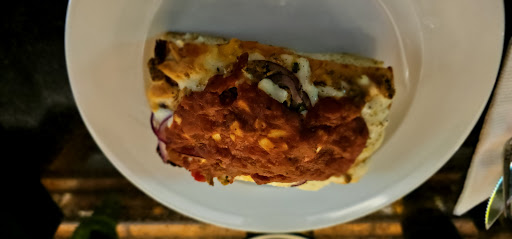 So, we definitely recommend this place and we plan on going back before we leave. I just can't give it a full 5*. The single slice pizza is not what you expect. It was focaccia bread baked in a small oven... This doesn't mean that they weren't delicious, we ordered more! There is a happy hour, I think 6-8 but I think the cocktails were a little expensive and took far too long to make. She came over and asked if I wanted another drink when I still had some left but didn't bother asking my wife, who had less left than me. So that's why service wasn't 5* but the waitress was very friendly. As for atmosphere, it was a little too dark for my liking, I had to use my phone light to read the menu and the music they played was not fitting for the bar..... Needed some classical 70s or 80s music. The music when entered was decent but then changed to weird pop music.
