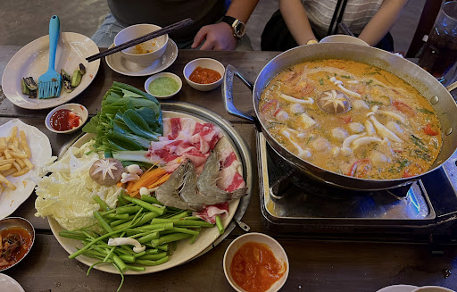 Mới đi lần đầu, nhưng chắc sẽ kh có lần sau ạ, mới ngồi xuống oder đã thấy bất ổn rồi, có sẵn menu trên bàn, mà kh có nv đứng đợi oder, mình phải kêu nv mới lại, mình oder combo 1 trong menu, thì có phần mực sate gì đó, nhưng lúc mang ra thì mang bò cuộn kim châm, mình thấy sai món, nên hỏi nv thì bạn đó nói hết mực nên đổi bò kim châm, mình nói sao kh ai báo hết vậy ạ?. Thì bạn nói tưởng bạn kia báo rồi. Xong r tới ăn vú dê nướng, mình xin chao, thì bạn nói hết chao. Bạn nv nam bưng ra cái lòng mỡ, bạn nói để bạn nướng dùm cho, vì đó nướng bằng chảo gang trên bếp gas, và bạn nướng cháy đen thui 🥲, tụi mình phải cắt mấy cái đen ra mới ăn được, rất ngọt, nghĩa là nhiều đường quá nên cháy đen hết . Lát sau tụi mình đang ăn thì thấy sao chả có cho gì để chấm với thịt hết? Thì mình hỏi nv là có nước chấm muối ớt xanh kh cho mình xin. Tận 15p bạn mới đem lên được 1 chén nhỏ xíu, mình kêu cho mình xin thêm 2 chén nữa đi ạ, vì tới 4 người. Rồi bạn mình làm rớt đũa, xin 20p mới cho được 1 đôi đũa. Còn thêm bạn nv đó làm 1 tháng rồi mà rất yếu luôn. Mình oder lẩu Thái thì bạn báo hết, kêu đổi qua Tomyum, tui mình cũng ok., Tụi mình ăn xong hết chưa ai kêu tính tiền thì bạn nv lên đưa bill,trong khi mới 22h hơn, mà quán mở tới 00:30, tụi mình ngơ ngác hỏi nhau ai kêu tính tiền vậy? Kiểm tra lại bill thì thấy có ghi tặng 1 phần bánh mì bơ tỏi, nhưng tụi mình kh có, nên hỏi lại thì bạn nv nói “ dạ e xin lỗi” rồi xong là vẫn kh có phần Bánh mì ??? Với nữa là Nhạc mở rất to nha. Oder cho khách mà kh có giấy bút, chỉ od bằng miệng th Mình đi 4 người tổng hết 945k đưa 1tr kh...