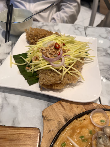 The first dish I tried was the crispy fish with green mango salad. The presentation was beautiful, with fresh mango strips and crunchy peanuts on top. However, the flavor was just average, and it lacked the bold Thai taste I was hoping for.