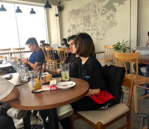 Quán này lúc trước rộng, sau sửa lại cho có chỗ bên ngoài ngồi hút thuốc nên thành ra bên trong tầng trệt rất chật, sáng sớm tầng trên chưa mở ngồi dưới chật - ngay đường đi bố trí 2 dãy bàn sát kính có kéo rèm xuống cũng rất nóng chân khó chịu. Quán nên bố trí thêm vài chậu cây bên ngoài kính đỡ nóng khách. Chỗ này ngay họng máy lạnh thả xuống phà phà rất khó chịu, phòng vệ sinh ngay hướng đó nếu có ai đi ra đi vào thì thoát mùi cũng ko ổn, mùi ớn luôn. Tầng trên lên có cái cửa kính bao lâu vẫn ko chịu dán decal hoặc thêm bảng treo gì, tôi ngồi đây nhiều lâu lâu lại nghe ầm ầm - số người đập mặt vào cửa này chắc cũng ko ít- lỗi là do họ ko chú ý, nhưng nếu cfh làm dấu hiệu gì cho họ thì đỡ tai nạn hơn. Riêng ghế ngồi thì đủ kiều, cái này là siêu chán luôn. Mấy Bác trông xe ổn áp- mới nhảy ra khỏi quán là bên kia đã dắt xe ra để sẵn bên ngoài cho mình.