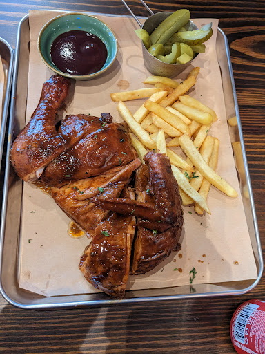 Read moreAmbiance: 8.5/10 - Like a typical sport bar. Good vibe. Food Quality: 8.5/10 - Decent flame grill chicken with very delicious BBQ sauce. Tasty brisket tacos. Service: 6.5/10 - The staff was polite and helpful. But food took sometimes even though there were only 2 orders. Value - 7/10 - Portion not too big, but workable. Cleanliness: 7.5/10 - Nothing iffy.