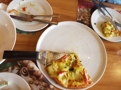 IF you like sweet pizza: the place is quite cozy. A/C is good, their staff is nice (helped us pick a better menu item to save money), and service is reasonable fast. I forgot to take a pizza, sorry. We got the seafood pizza with...