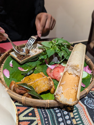 As someone with celiac, dining out can often be a challenge, but Luna, our server, was incredibly helpful and knowledgeable about gluten-free options, which made the experience stress-free. I started with their vegetable soup, which was flavorful and comforting, paired with a refreshing peach tea. My boyfriend ordered the Northwest grilled chicken, served beautifully with rice in bamboo—both the presentation and taste were outstanding.