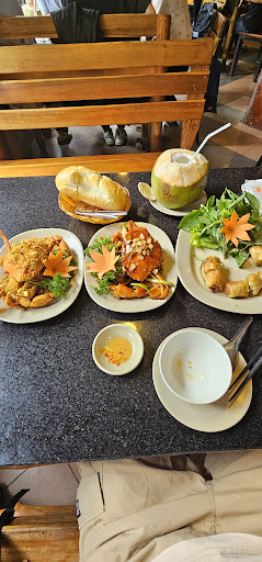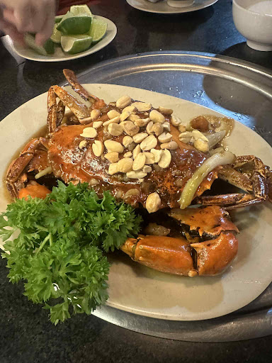 Returning customer for the 2nd time. First time was here with my family. They can accommodate large parties. Went with 7 people had the crab fried rice which is good. Some salad was interesting, 220k crabs 2 diff flavors. Salted egg sauce and the other was tamarind. The salted egg was decent. Not my favorite(salted egg yolk here here but other places yes ahaha), but the tamarind was a hit. Pretty damn good sauce. Glass noodles with crab was also worth a try. Fresh coconut is also offered here nice and cold. Service and food can be slow if its really busy. Since it was the holidays they ran out of a lot of stuff. Today my 2nd time trying again the crab. Its pretty good but don't get it fried. Ask for steam or boiled with beer so it remains its natural flavors. I asked for the hong kong style and tamarind sauce again. Hong Kong style does taste good but since it fried, it dries out the meat a little bit. Depends on what you order it can be really good. They do have parking for motorbikes as well. You can go and see all the fresh selections of seafood and choose to your liking. Double check on the prices. The price are decently here. Not to over price or cheap. It is a seafood restaurant overall. The service can be attentive but you have to get their attention so it's good but they don't come and check up on you often. Also see both locals and people from other countries eat here. The manager and owners are really nice people. Will greet you. Also cry the crab egg rolls. Didn't look like much crab inside but you can taste it surprisingly. So definitely...