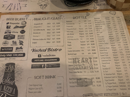 1/4 Ve chai Bistro 210/22 Cách mạng tháng 8 5.0 /5 điểm Lần đầu tàu ngầm trồi lên ạ ☺️ chúc cả nhà cuối tuần không phải chạy deadline! Vechai bistro Đuợc bạn bè rủ rê, nên mình đi thử, nghe đồn đầu bếp xịn, còn có buffet bia đến 19g nữa. Các món đúng là rất ngon, vừa miệng, tuơi. Phục vụ nhiệt tình. Buffet bia có nhiều lọai, nhưng tới 19g là kết thúc rồi, giá 199k/nguời. Lần đầu tiên mình phát hiện ra lọai bia uống ngon ngon lắm, bia corona Em đang ở Ve chai Bistro 210/22 Cách mạng tháng 8 quận 3 Sài Gòn vì quá choáng nên phải post ngay ;))) - Bên trái là salad cá ngừ 115k - em tưởng tượng lúc gọi món là: chỉ có phân nửa số rau trên trộn với cá ngừ đóng hộp nhưng ai ngờ... là cá ngừ thật nướng tái trộn với rất nhiều rau 🤗 - Bên phải là xúc xích nướng cũng tầm 150k (em ăn hết 1/2 rồi nghen) thơm và không quá mặn Em còn gọi thêm sụn gà rang muối, bạch tuột nướng ớt xiêm xanh nữa nhưng mấy bạn phục vụ... cản vì sợ ăn không hết và chủ động đi cancel bạch tuột nướng giùm luôn 😂😂😂 Lần 2 em đến đây nhưng k nhớ khối lượng thức ăn nên mạnh mẽ order 4 món cho 2 đứa ;)))) Quán okie lắm ạ! Nhà mình có thể hẹn bạn cuối tuần "chiu chiu" được 😄 Quán sân vườn, nhạc không có chợ và Đang có ctkm tặng 1 chai Budweiser nữa ạ 😜 * Update: em gọi salad cá ngừ, sụn gà rang muối, xúc xích nướng, 2 chai bia hoegaarden rosee (và được tặng 2 chai Bud nữa) thì tổng hoá bill là 540k ạ #review_không_seeding #beerandgrill #bistro #bbq — đang  ăn beer tại VECHAI...