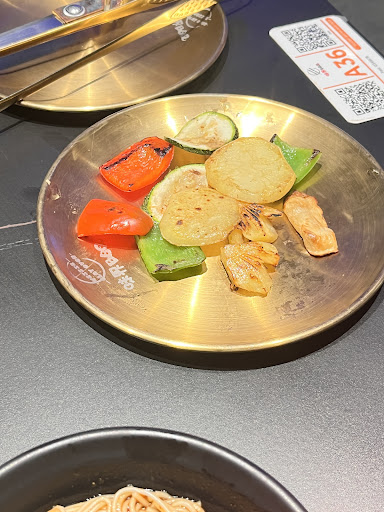 Read moreEnglish below Hôm nay mình dùng bữa lần đầu tại đây và cảm nhận đầu tiên là nhân viên rất nhiệt tình nè, tâm lý ở khoảng có chun cài tóc cho phụ nữ (điểm cộng) , thay chảo nướng đều đặn và cũng hỗ trợ phần pha nước chấm rất ngon nè ( 8/10₫). Về đồ ăn mình chọn gói buffet 329k và 20k nước, đồ ăn hải sản sẽ có vẹm (không ngon lắm 6/10₫), mực và bạch tuộc cũng tạm tạm vì mức buffet này mình cũng không yêu cầu quá nhiều về độ tươi (7/10₫). Phần thịt có thịt heo và bò ướp gia vị khá là ngon miệng khi ăn kèm cả nước chấm và rau thì rất tươi luôn nha (7,5/10₫). Ngoài các món ăn trên quầy line thì các bạn có thể quét mã để gọi thêm bánh bao chiên, kim chấm nướng giấy bạc và tráng miệng trên điện thoại. Tổng kết mình cho dịch vụ là 8/10 và đồ ăn là 7,5/10 nha, nên thử nha các bạn.