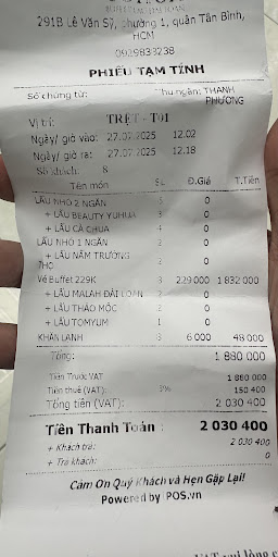 Không hài lòng, cảm giác bị lừa: Có tôm và nhiều món khác, nhưng lại giấu nhẹm đi, khách phải biết và gọi nhân viên thì mới đưa thêm ra (nhưng với một thái độ mặt nặng mày nhẹ). -Nhà mình lần đầu đi ăn, đương nhiên không biết chuyện này, đến lúc tính tiền thấy nhà khác phàn nàn (họ đến lần thứ 2 rồi, lần đầu họ đến thì có tôm trên băng chuyền) mình thì mới biết. -Bạn tính tiền biện hộ với mình, rằng lẩu băng chuyền chỉ có 40 món, còn 20 món phải gọi mới có. Rồi mình hỏi tại sao không nói rõ, bạn liền lái sang chuyện khác rằng món trên băng chuyền sẽ lên theo lượt. Rồi cái gì mà trên băng chuyền không có chỗ trống, trong khi rất nhiều dĩa trống chạy quanh quanh. -Ngoài ra nhân viên châm nước lẩu hay tỏ thái độ với khách và đổ thừa khách bật bếp quá lớn, trong khi khách húp canh nên vơi nước lẩu. -Điểm cộng duy nhất là quán có gọi hỏi ý xếp chỗ cho 8 người xếp lầu trên hay lầu dưới.