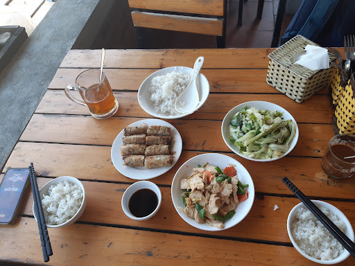We went for early dinner 4pm because seems places around here close early. The owner said they open until 9pm. It's a family run restaurant, they were very friendly and speak very good English. We had fried greens with garlic, fried pork with onion and mushrooms, and grilled pork on a hot plate. Everything was seasoned nicely and served with rice. Portions were big, and they gave us fresh passionfruit for dessert. Location was great, overlooking the river. Will definitely recommend if you are looking for a tasty hot meal...