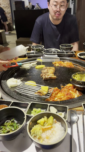 Bruh, this Korean BBQ was delicious. Honestly better than all the KBBQ’s I went to in Seoul and definitely better than the ones I usually eat at in Seattle or LA. We ordered two servings of pork belly and it looked like they brought us 3. Ordered a spicy noodle and it was bomb. They give you tons of free food - kimchee on the grill, steamed egg, side dishes galore. I wish my gf could eat more so that we could order and try more things. Anyone want to join me for a round...