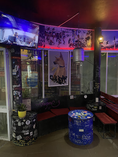 The atmosphere is what I love the most though. Expect graffiti on the walls and around their pool table and fish tank. Everything from the lighting fixtures to the inventive metal barrel tables amongst everything else has character.