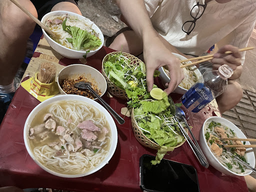 we came at a very busy time so maybe this restaurant is better when it is less busy. there were no tables available for a long time, we saw people eating on chairs without tables. and even after we sat down, they didn't clear our table until our food came. dirty bowls and trash is all over the street. it was hot and no fans were provided either. tissues and utensils were not stocked. the food itself is just okay, not what we would expect from a popular place. the bun bo looks more like pho, and it had no color. they were either too busy or forgot to add it. they also forgot to give us limes. it is cheap though so you get what you pay for.