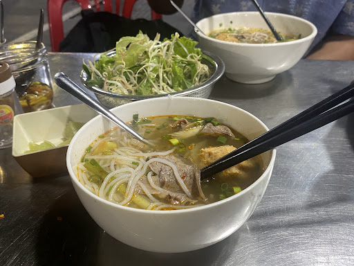 Read moreKhông phải tô bún bò ngon nhất mình ăn trong dịp đến Huế, giá 35k tô nạm chả, 55k tô thập cẩm không giò. Nước dùng không dầu mỡ, không phải kiểu đậm đà với ngọt, nạm đúng kiểu mình thích, cục chả to nhưng chả mềm mềm như mấy cục cá viên hay cục mọc không như chả cây hay săn như chỗ khác nên nói chung là tạm được chứ cân nhắc quay lại thì không. Order phải nhắc lại nhiều lần vì quán...