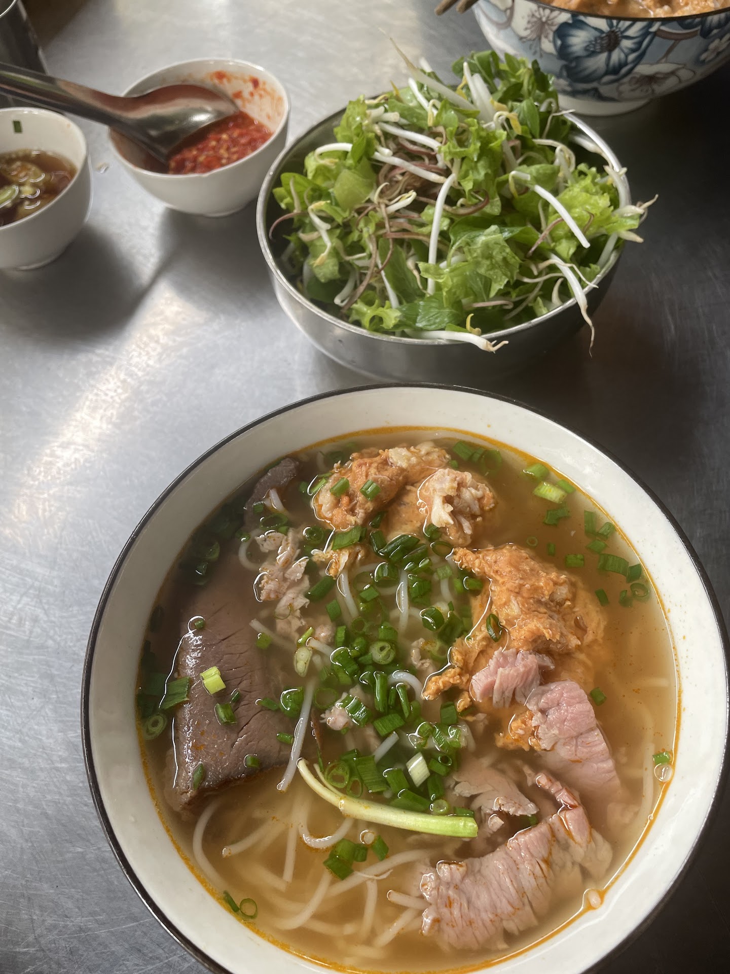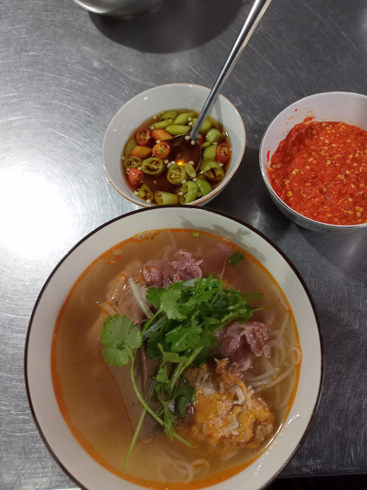 We wanted to find authentic bun bo hue beyond what we had tasted at restaurants and also our hotel breakfast, so decided to check this place after reading recommendations online. It was not bad, especially the crab meatballs. But it seemed that they had ran out of pork blood, or they assumed that we don’t eat (tried to ask for it but was lost in translation). Also be prepared to pay foreigner tax, as each bowl is 50,000 vnd. I’m pretty sure the locals pay a different price. It’s not a big deal but just doesn’t feel good to be fleeced. Also as many reviewers had mentioned, the stall is quite dingy and doesn’t appear very clean, so it doesn’t really justify...