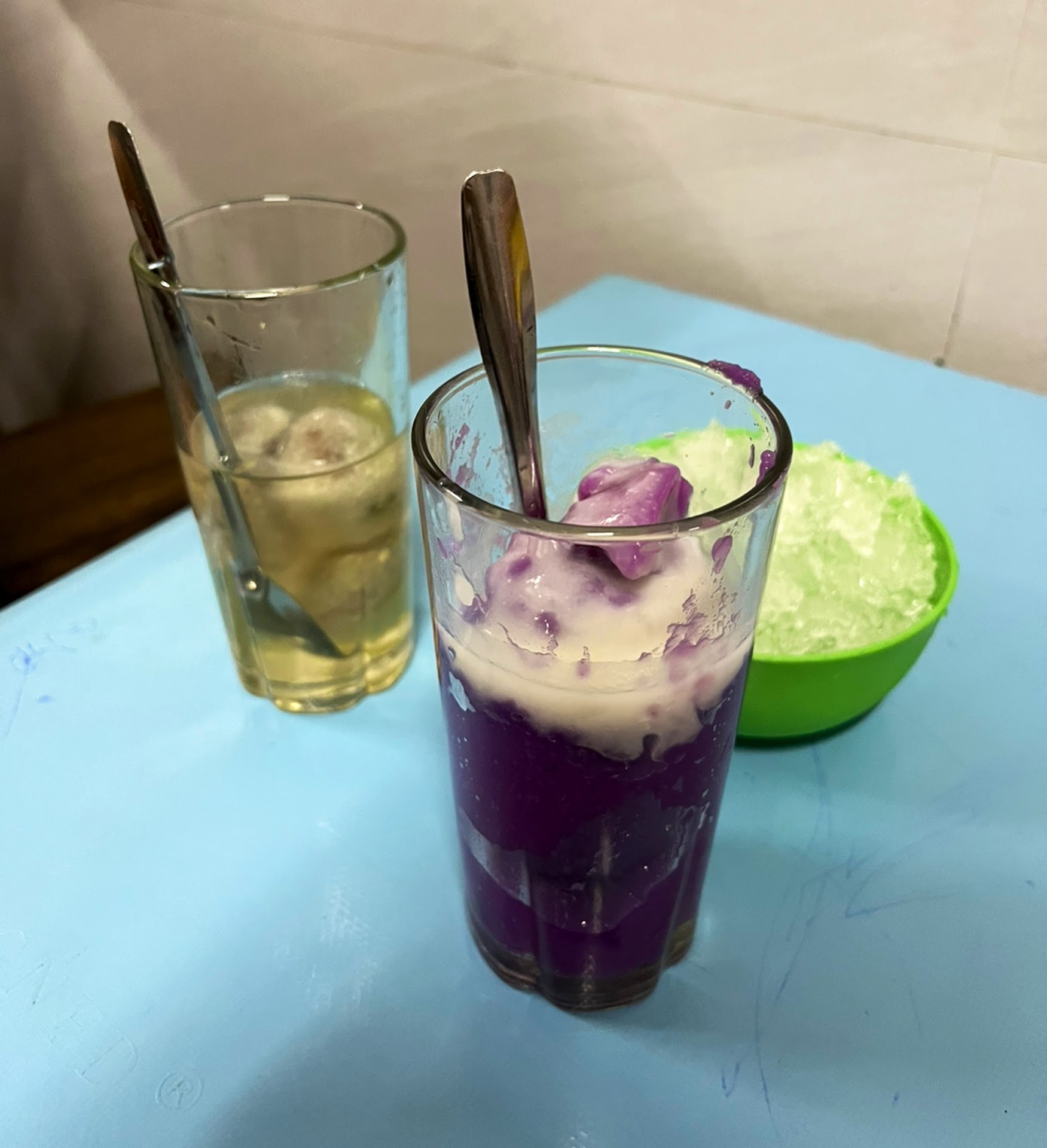 It’s always crowded, locals and tourists alike jockeying for a seat on tiny plastic chairs that might ruin your back but add a touch of authenticity. Motorbikes line the alley, and the occasional rain turns the entrance into a slippery adventure. The menu is simple: all cups cost the same, with a dizzying variety of sweet soups—beans, lotus seeds, purple yam, banana, and the infamous tapioca dumplings with roasted pork. The latter is a shock at first—chewy dumplings wrapped around savoury pork in a gingery sugar broth—but it works. For those with a sweet tooth, the mixed sweet soups, corn, and mung bean versions hit the mark. For others, it’s a sugar punch that demands a lot of ice.