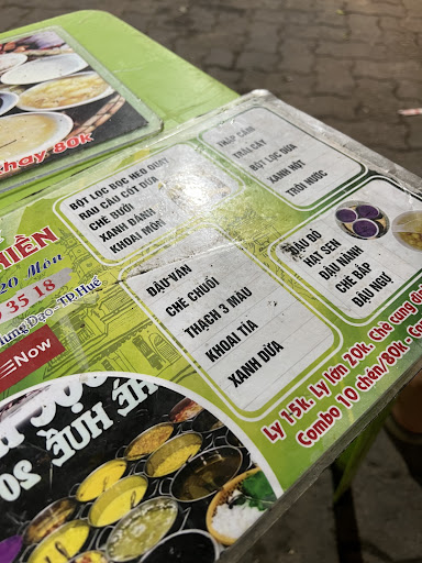 Read moreỞ Huế nổi tiếng là chè. Nhưng ngoài một số món chè lạ như Heo Quay, khoai tía,… thì cũng quanh quẩn mấy món chè mà vùng miền trung nào chả có lại rẻ và ngon chỉ có 3k 5k. Vào quán này vì thấy ngay mặt tiền sáng sủa, combo chè nhìn hấp dẫn mà tới 80k/10 chén, 160k/20 chén mà nhìn bé tẹo, chán đời, chỉ bằng 2 muỗng múc là hết. Gọi ly chè hạt sen nhãn nhục, le que được vài hạt chém 20k, hài thiệt sự