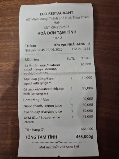 Chúng tôi rất ấn tượng đến nỗi đã đặt một chuyến thăm khác vào ngày mai lúc 7 giờ tối! Nếu bạn đang ở Huế và đang tìm kiếm một trải nghiệm ăn uống đặc biệt, Nhà hàng Eco là một nơi tuyệt đối phải đến. Rất đáng để ghé thăm!