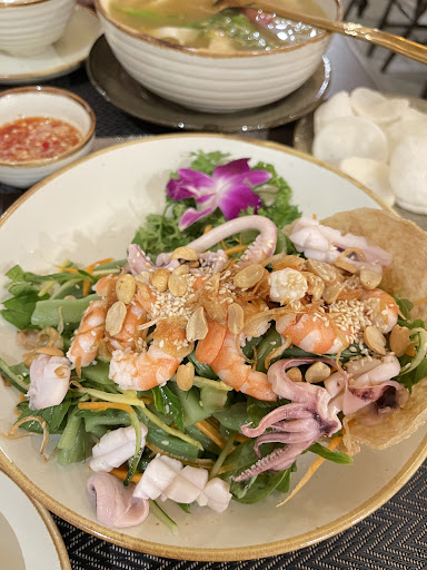 We started with the seafood salad, which was a standout dish. The fresh seafood was perfectly complemented by a unique vegetable called rau Tiến Vừa, adding a surprising and delightful twist to the flavors. This unexpected ingredient elevated the dish and showcased the restaurant's commitment to using diverse and intriguing ingredients.
