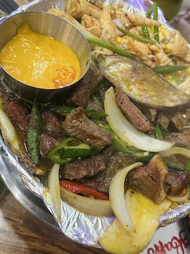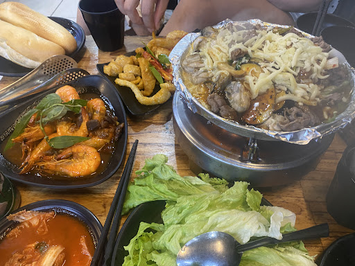 Read moreKhông gian nhỏ, đông khách nên phải đợi bàn hơi lâu. Mình gọi set bò tảng sốt trứng muối thêm phần chân gà và mì xào hải sản vừa ăn, thịt bò mềm. Lẩu bò Mỹ cuộn viên thả thì cảm thấy không hợp với mình, nước lẩu nhạt. Nhân viên lịch...