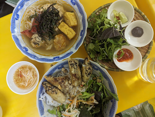 Read moreWe were staying nearby and read the good reviews so had to try it. This is a fantastic find! The owner shows pictures to help choose - we had bbq pork noodles & salad (banh uot thit nuong), prawn rice pancakes (banh beo chen) - v different and pork and lemongrass skewers which you wrap in rice paper and salad(nem lui oc). We went back the next day just after 2pm and he was closed so tried later at 7pm and thankfully, he was open - this time we had fried spring rolls, sticky rice dumplings (banh ram it) - v delicate and crab soup - quite spicy but delicious. This chef is such a talent serving up local Hue street food with incredible attention to detail and good value. One of the best places we have eaten in our 3 week stay in Vietnam! Very rare for us to visit a place...
