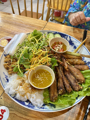 My favorite meal in Hue by far!!! This is a local restaurant run by the sweetest family ever. You MUST get the sizzling plates and the fried duck wings. My favorite was the glass noodle sizzling plate, but the egg noodle one was so good it was truly hard to pick! If you’re lucky, you might meet the owner’s daughters who are super sweet and talented. One of them is an amazing singer whose music videos are playing in the restaurant and the other is the funniest, nicest girl ever!! We had a great time at this restaurant chatting and laughing with them for hours. Just thinking about my experience here fills my heart with warmth. I will definitely be back next...