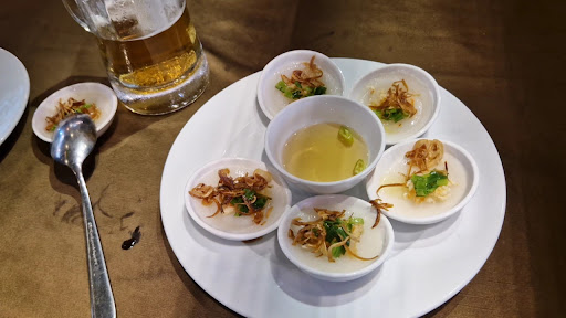 We shared a plate of crispy spring rolls, a bowl of beef noodle soup, and braised tofu with mushrooms. Each dish was thoughtfully prepared – rooted in Hue tradition but refined for a modern palate. The tofu was soft and flavorful, the spring rolls crisp, and the broth of the noodle soup rich without being overpowering.