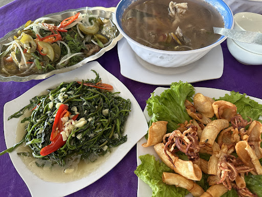 Đồ ăn bình thường nhưng có bãi biển tự nhiên siêu đẹp, đẹp hơn nhiều bãi biển riêng của các resort. Bãi cát thoải và ko có rác. Nước biển trong, giữa trưa vẫn mát lạnh.