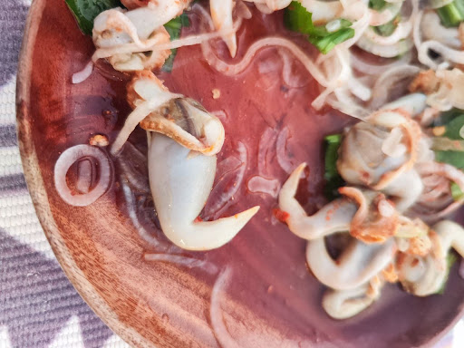 The food was not good at all. We had "seafood pasta" which had no whitewine and fresh herbs as described in the menu.. also there were only three shrimps and some stripes of very rubbery squid in it. The price for that is way too high. Then we had the Thai seafood salad which only included onion, some mint and some indefinable and super rubbery animal in it. It was not possible to chew it. Then we had a Tom yum seafood soup which included one fish which was just cut into parts and cooked. It only had fishbones and skin, no meat to eat. So we also couldn't eat that. All in all it is very expensive and not enjoyable. The only good thing is the view and the waitess...