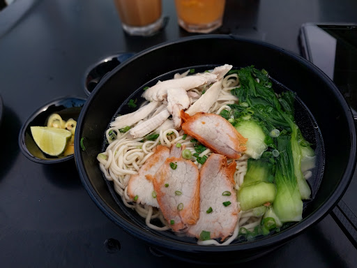 Quá tệ, từ cách phục vụ tới chất lượng món: Quán bày bàn ra vỉa hè trông rất tiện lợi, nhưng khi vào bàn ngồi thì kêu khách phải lại quầy tự oder chứ không có người ra phục vụ. Nhân viên oder chả có nụ cười, khi oder thiếu món, khách nhắc lại để tính tiền cho đủ thì mắt liếc khách như kiểu lỗi tại khách chứ không phải tại mình. Oder xong thì đưa cho cái thẻ và bill tính tiền, bảo khách đứng chờ chỗ quầy bếp nấu, đợi nấu xong thì khách tự bưng lại bàn, tự lấy chanh, ớt, gia vị chấm, mặc dù nhân viên quán rất đông nha. Đang ngồi ăn thì thấy bàn kế bên được nhân viên phục vụ bưng thức ăn ra tại bàn cho khách, khi thắc mắc thì được trả lời là "tại anh không có NHỜ nên tụi em không có bưng ra DÙM". Chất lượng sợi mì: bở và dở (công tâm nhận xét chứ không phải vì 4 vấn đề đã nêu ở trên mà nhận xét như thế). Chất lượng thịt gà: thịt gà công nghiệp nên bở cũng y chang sợi mì. Được cái con tôm luộc có kỹ thuật vừa chín tới nên vẫn giữ được độ giòn và ngọt của thịt tôm. ĐÁNH GIÁ CHUNG: SẼ KHÔNG BAO GIỜ QUAY LẠI VÀ KHÔNG BAO GIỜ GIỚI THIỆU CHO BẠN BÈ GHÉ QUÁN NÀY KHI ĐẾN...