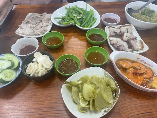 The chef here is incredibly skilled in seasoning dishes like braised, fried, grilled, and stir-fried foods. The roasted pork, in particular, is a standout with its crispy skin and delicious aroma, paired with a unique plum-flavored dipping sauce. The fresh herbs are carefully washed and served alongside the dishes. Even though the restaurant is packed, it takes less than five minutes from ordering to have a meticulously prepared, hot meal served.