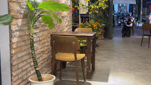 Không gian: Nhà hàng được thiết kế với phong cách mộc mạc, gần gũi với thiên nhiên. Các bàn ghế làm từ gỗ tạo cảm giác ấm cúng, kết hợp với các chậu cây xanh tươi mát, giúp khách hàng thư giãn và tận hưởng bữa ăn trong một không gian thoáng đãng và dễ chịu.