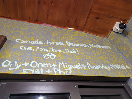 This place deserves a high rating for their hospitality, friendliness and communal-hub vibe! Some of the friendliest, kindest and most generous people we've met in Vietnam! Super accommodating and helpful, and will go out of their way to make you feel comfortable, at home, and looked after. Great place for meeting other travelers. We intended to just swing by for a meal after our hike, but ended up staying for hours chatting and drinking local rice wine with fellow travelers and the local owners & family. They kept bringing out more rounds of drinks and tasty snacks for us. They even offered to drive us home afterwards for free to ensure we got back safely. Lots of vegetarian & vegan options! Our group would recommend the fries, coconut coffee, and fried tofu :) Great value as well. This restaurant is very new in the community, and I can see it becoming a staple "must visit" while in town for sure! Definitely check it out while you're here, and ask if you can write your names on the wall in paint too!