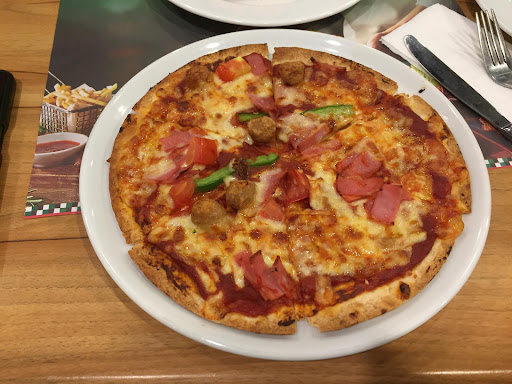 Ko gian khá. Phục vụ khá. Nhưng chất lượng đồ ăn tụt dốc thê thảm. Xưa mình hay ăn ở Pizz Com ở Nam Định city rất ổn. Sau đó,đợt dịch 2021 ăn ở Pizz Com trong AEON Long Biên - Hà Nội thấy tồi tệ quá mức,cả về phục vụ ( bàn ghế sô lệch,bẩn thỉu..v.v..) đến nv phục vụ chậm chạp,lờ đờ,kiểu ko muốn làm mà muốn sập. Còn đồ ăn thì ko tả nổi,quá tệ,rất phí tiền. Đến hôm nọ mình có việc đi Nam Định thử quay lại Pizz com ở Nam Định xem sao..nhưng thấy là...thất vọng hẳn luôn !!! Cũng tồi tệ như ở Pizz Com trong AEON HN,hơn đc xíu là ở NĐ quán nằm người mặt đường nên có ko gian hơn và nhân viên ngoan hơn chút. Mng đoán có lẽ Pizz Com gặp sự cố gì đó nên muốn buông xuôi thương hiệu rồi. Vậy nên cả nhà mình...say goodbye forever...