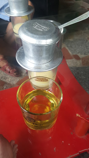 Cà phê sữa hơi ngọt. Giá rẻ. Có cả dịch vụ bán vé máy...