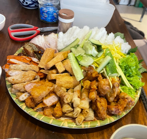 Read moreMột quán mà local ăn siêu nhiều, mình đến thì thấy quán khá đông, mọi người phải chọn chỗ nếu không muốn bị nóng, phục vụ lên rất nhanh, không phải chờ đến 10 phút dù đây là lần thứ 6-7 mình quay lại quán, đồ ăn rất rất nhiều, mình gọi một mẹt 2 người nhưng phải 3 người mới ăn hết và ăn no, do bọn mình đi là con gái hết nên ăn khá ít,.mọi người có thể cân nhắc gọi mẹt đúng lượng người hoặc cao hơn nếu có con trai đi theo, các loại chả thì khá nhiều bột (trừ chả cam ra) dồi sụn ăn thơm, nhưng không ấn tượng lắm, thịt luộc hơi khô, tạm ổn, chả ram không ấn tượng, lòng chất lượng không đồng đều, ăn lúc đắng lúc không , có tặng kèm nước nhưng uống khá nhạt, mọi người có thể gọi riêng để đậm vị hơn, recommend ốc bươu nhồi thịt, một dĩa 20 nghìn nhưng ăn ngon, ốc thơm, giòn, ăn vị rất ngọt, không hắc sả và các...