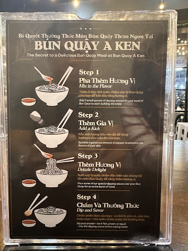 Read moreOn our 16-year anniversary trip back to Nha Trang, we decided to try Bun Quay A Ken, and it turned out to be one of the best meals of our trip. The broth is clear and light, allowing the natural freshness of the squid and seafood to really stand out. The squid was cooked perfectly – tender yet firm, and the fish and prawn patties had an amazing bounce and flavor. One of the highlights was getting to mix my own dipping sauce, which added a fun, personal touch to the meal. The restaurant has a cozy, welcoming vibe, and despite being busy, the service was quick and efficient.