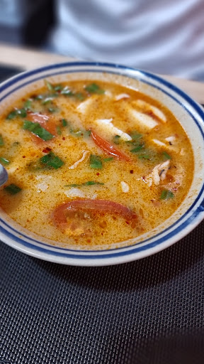 Ordered "Tom kha gai" coconut chicken soup. I liked the taste of coconut but it had nothing much to do with the actual thai soup. I tried to figure out what was missing apart from chili. Maybe galangal or kaffir lime leaves or lemongrass. Also there were almost no customers but I still had to shout for the waiter since he didn't look around even once. Probably the pad thai would have been a...